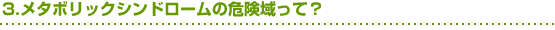 | (1)の腹部肥満に加え、(2)〜(3)(高脂血症、高血圧、高血糖)のつち2つがあてはまるとメタボリックシンドロームです。 |